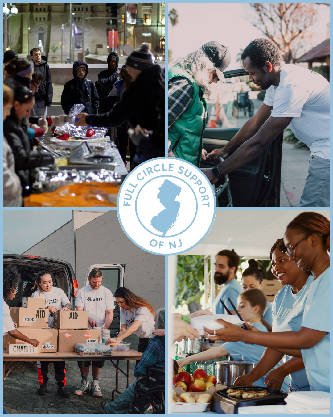 Full Circle Support of New Jersey aims to promote a stable living for all. We provide toiletries, food, clothing, and other necessities for individuals within various communities to tackle the battles that impact stability.